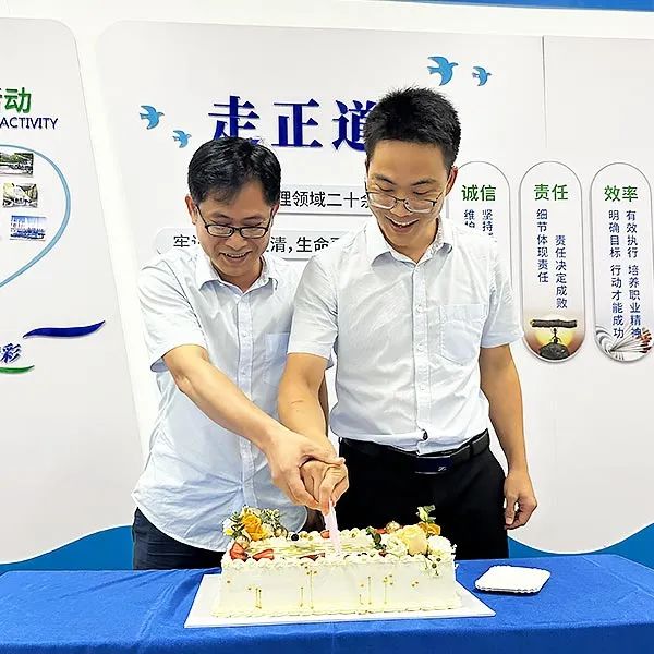 頒獎(jiǎng)結(jié)束后,由2022年度優(yōu)秀員工潘工、鄒工代表全體員工一起切分紀(jì)念蛋糕,全體同事一起品嘗辛勤工作后的甘甜。