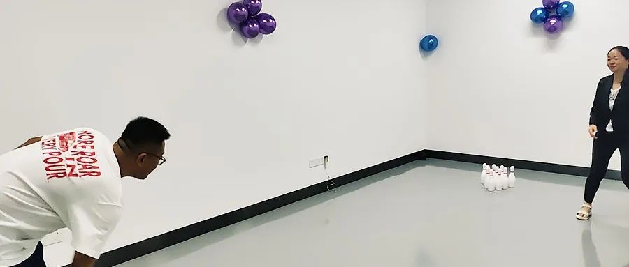 第三個(gè)環(huán)節(jié)是歡樂派對(duì),瓜果零食、飲料酒茶齊備,乒乓球、保齡球、投壺、小游戲?qū)映霾桓F,歡聲、笑語(yǔ)回蕩在寶龍分部?jī)?nèi)。